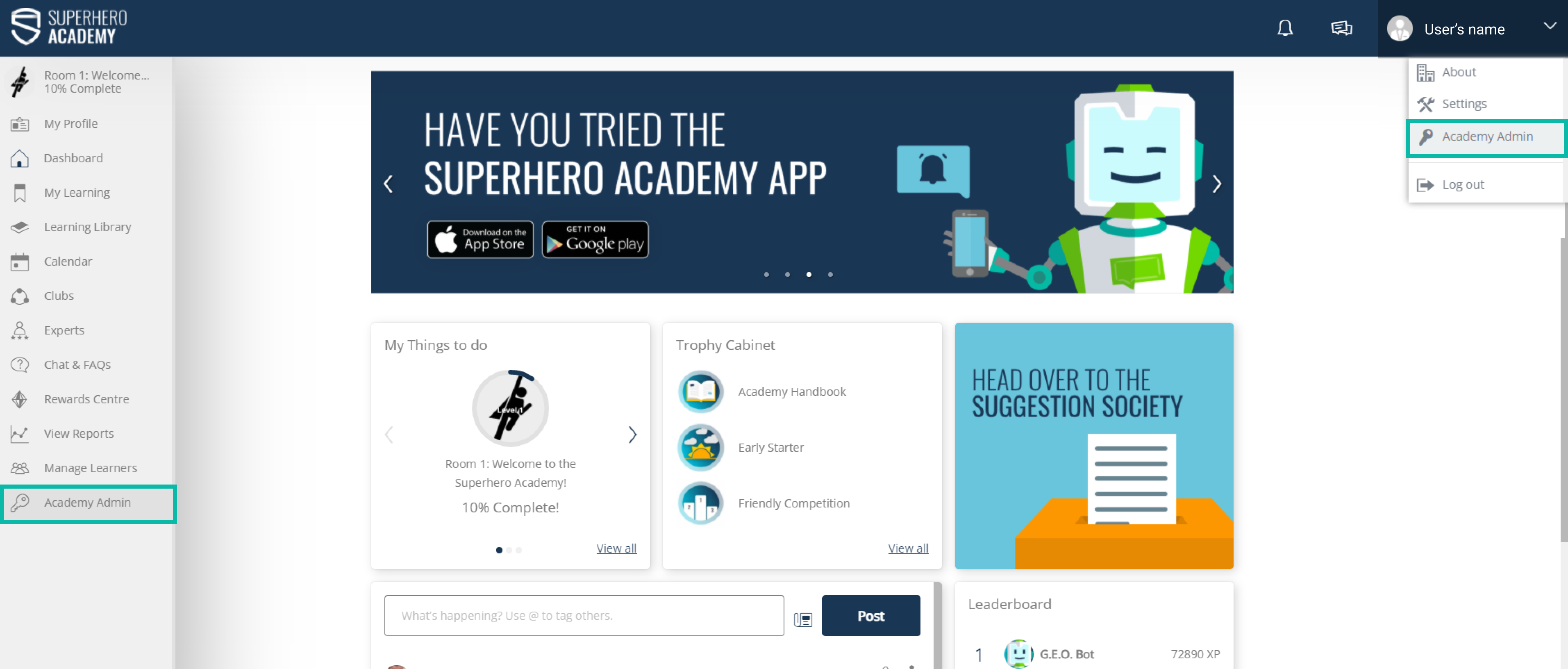 When you first log in login on the Academy LMS, you are directed to the learner dashboard.