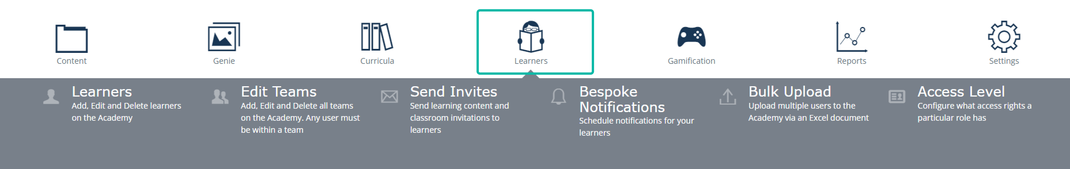Group Manager: Here Admin can manage which users can see which content. Simply create a content group, allocate specific content and then decide who is a member of that group. If they are a member, then they'll be able to see the content in their libraries. Learn more about group managers here.