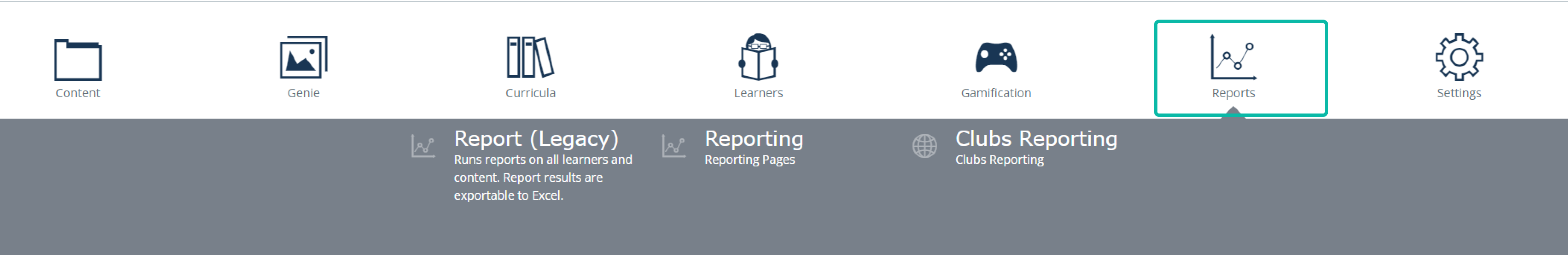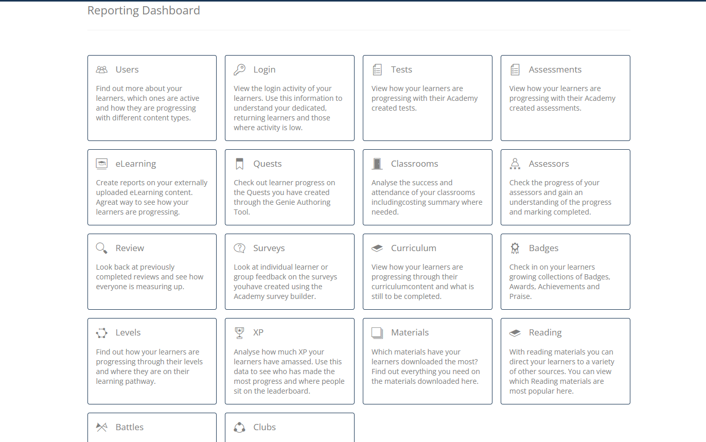 Admin can also set up scheduled reports, for example, a monthly review of log-in numbers to assess engagement. This will send you an email when the report is completed with the compiled data.
