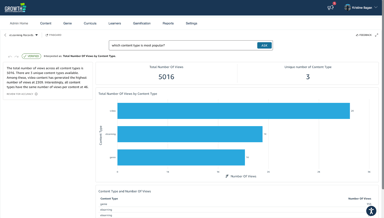AI Insights Reporting makes it easier to turn learning data into meaningful insights. By simply asking questions in natural language, you can generate reports and visuals that highlight progress, engagement, and areas for improvement. Use these insights to make data-driven decisions and continuously enhance your learning programs.