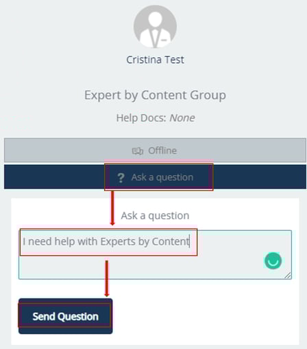 To ask questions to the “Expert by Content”, the learner will click on the “Ask a Question” button, will type the question followed by the send button.