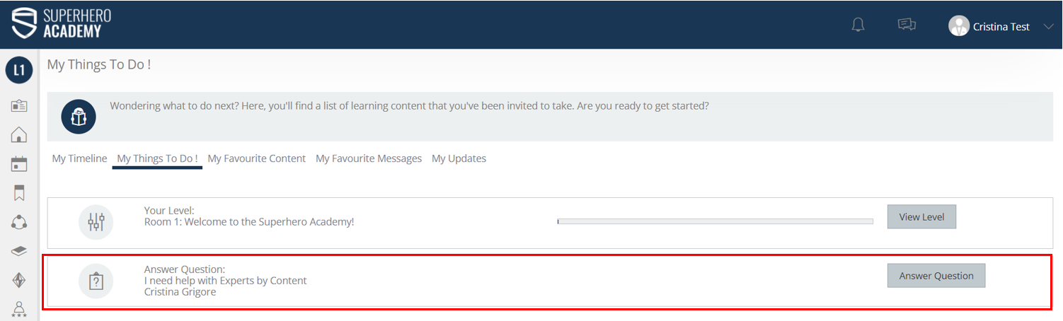 The “Expert by Content” will receive an email as a notification to say that a new question is waiting to be answered in the “My Things To Do” section.