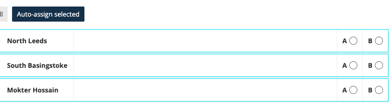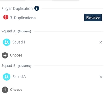 The system will determine if you have players who appear in both Squads. Before being able to publish, you need to resolve this. You can either let the system resolve this by selecting all and auto-assign the players or resolve this manually by choosing Squad for the person.
