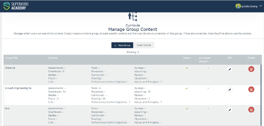 You can create and edit the content groups under the admin panel under Curricula - Group Manager.