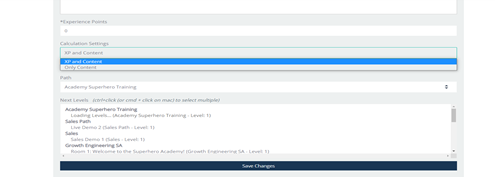 o You can also choose either to use “Only Content” in the Calculation Settings or XP and Content As shown in the second image below. The difference between the two is that if you select "Only Content", the calculation will be based only on the content that the learner has completed. Whereas, if you select XP and Content, the experience points for the content will be calculated along with the content completed.