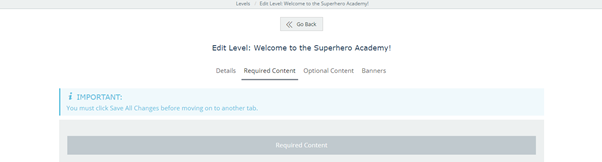 Now that you have the level created, it’s time to add “Required Content”, you can also add “Optional Content”