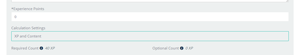 For example, the Required XP in the following image is 40 and the XP & Content has been selected in the Calculation Settings: