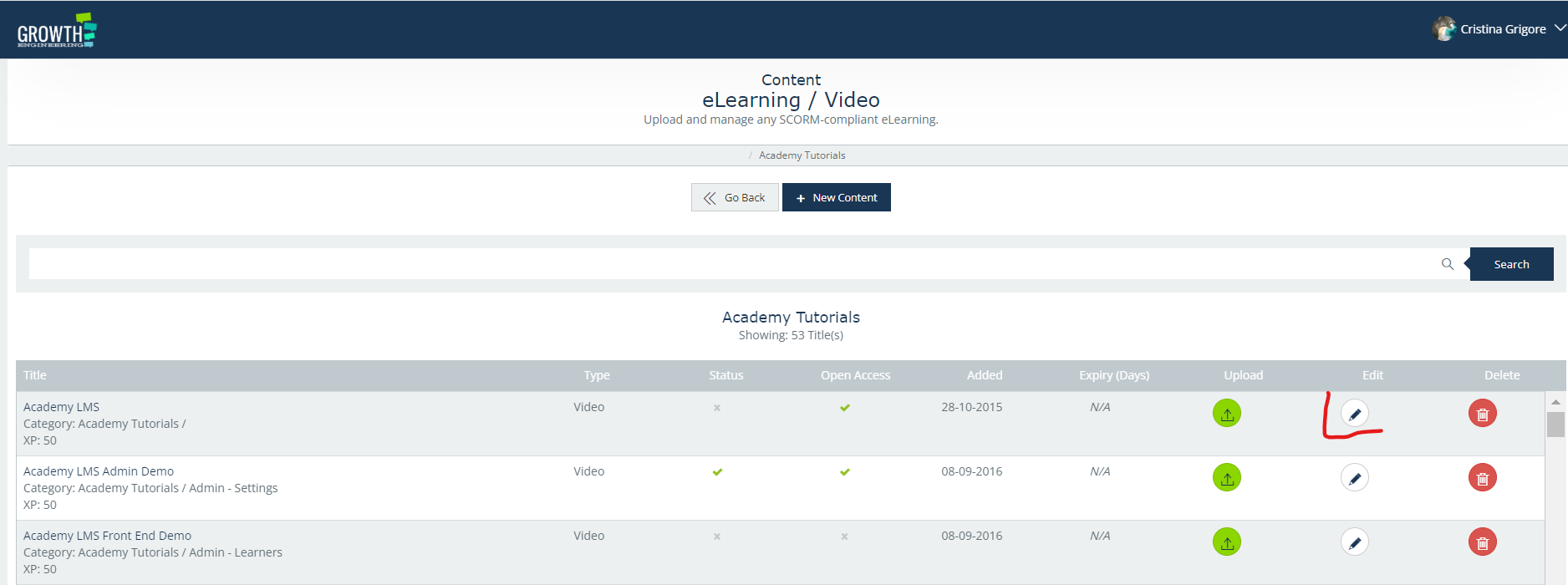 On the LMS, the administrator has on-hand options to expire or offline content.