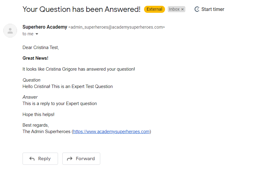 The Expert will receive an email as a notification to say that a new question is waiting to be answered in the “My Things To Do” section.