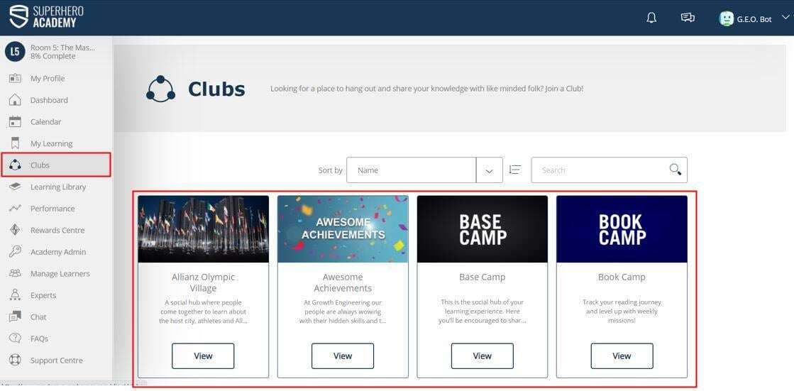 Create groups that will give learners a forum where they can let their imagination and creative juices flow freely! Clubs must be assigned to a hierarchy or a Content Group, and either can work well depending on how you want to organise your learners.
