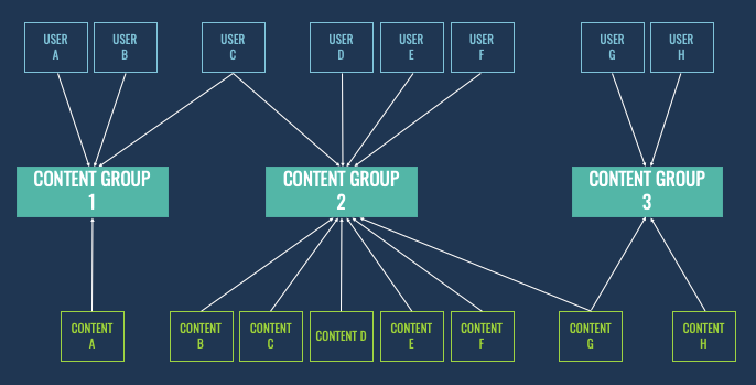 Learners can belong to multiple groups, so it is recommended best to start first drawing this out before implementing it in the LMS. For example, the below is an example of how learners can below to various content groups: